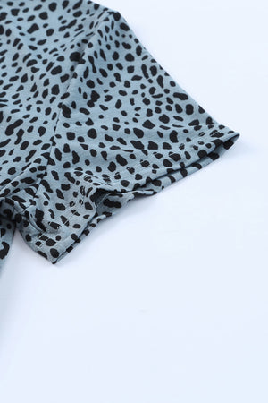 Heim Grey Cheetah Print Casual Crew Neck T Shirt