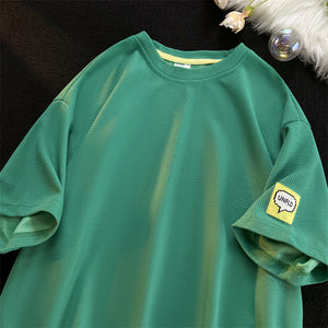 Gefertigt aus 100 % atmungsaktivem Polyester, bietet es Leichtigkeit, Feuchtigkeitsableitung und optimale Bewegungsfreiheit – ideal für warme Sommertage oder entspannte Freizeitmomente. Der klassische Rundhalsausschnitt und die halblangen Ärmel verleihen dem Shirt eine ausgewogene Silhouette, während der lockere Schnitt für einen modernen Streetwear-Touch sorgt.