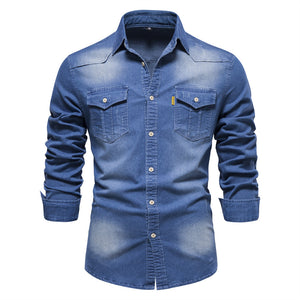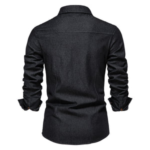 Herren Jeanshemd – Dunkelblau, Robust & Elegant | Denim-Langarmhemd mit Taschen-Design