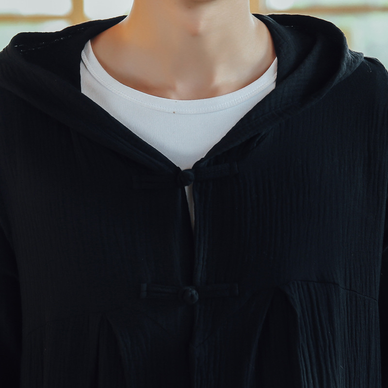 Dieser Mantel ist mehr als nur ein Kleidungsstück – er ist ein Statement für Individualität und zeitlose Gelassenheit. Inspiriert vom japanisch-asiatischen Minimalismus, vereint er traditionelle Elemente mit moderner Lässigkeit und schafft so einen einzigartigen Look für stilbewusste Männer.
