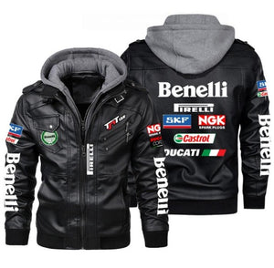 Die aufwendigen Stickereien und Racing-Elemente verleihen dieser Jacke eine unverwechselbare Note, während der Stehkragen und die abnehmbare Kapuze für Flexibilität sorgen.