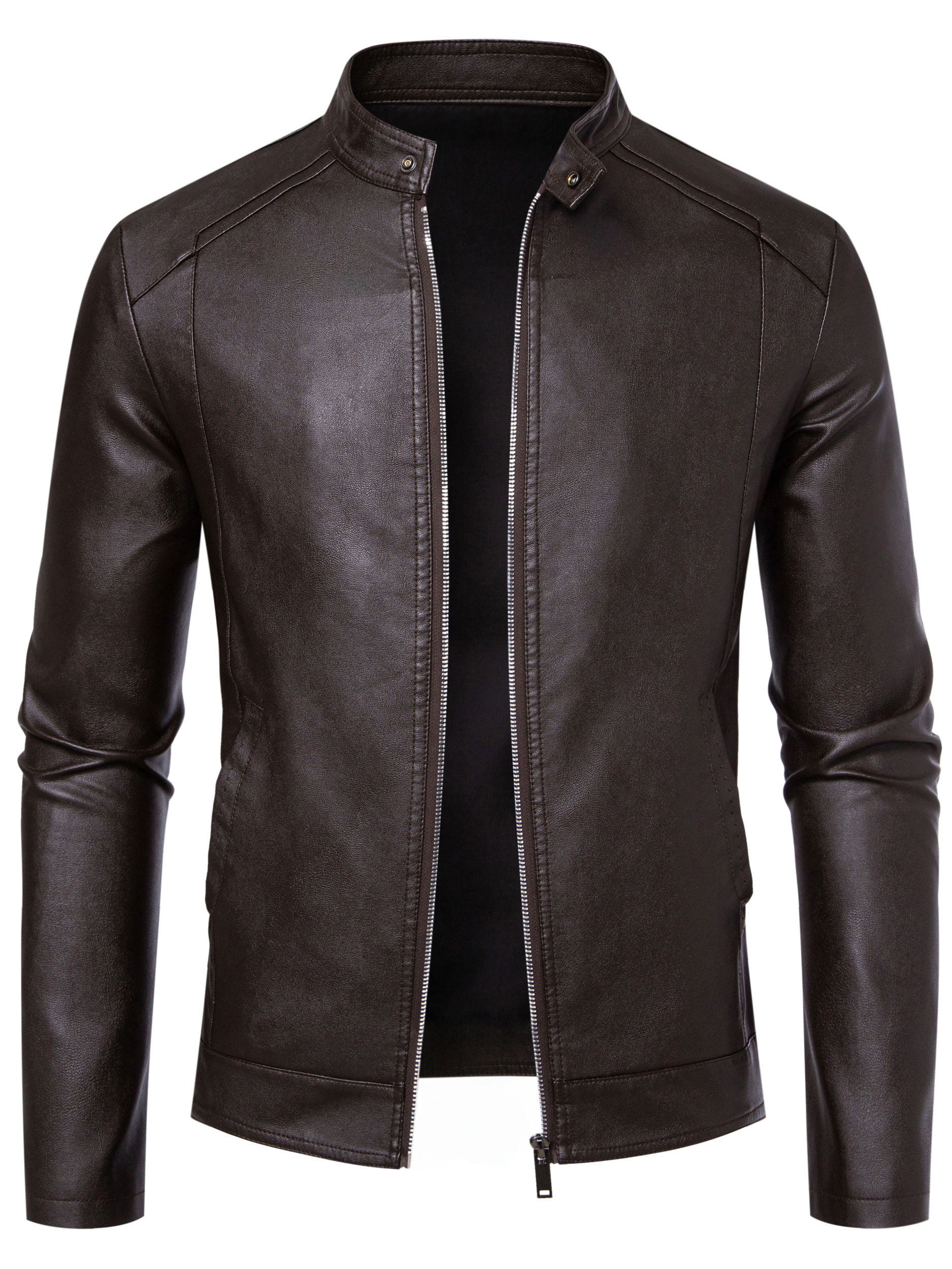Gefertigt aus hochwertigem PU-Leder, überzeugt sie durch ihre geschmeidige Oberfläche, den taillierten Schnitt und den ikonischen Stehkragen – ein Symbol für maskuline Eleganz und urbane Coolness.