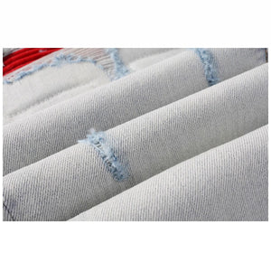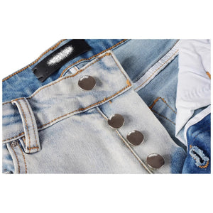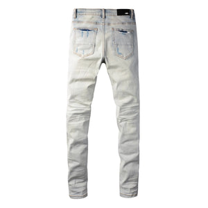 Herren Slim-Fit Ripped Jeans – Hellblaue Denim mit roten Patches & High-Street Flair | Modern, Ausdrucksstark & Bequem