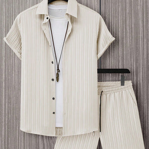 Das strukturierte Design, kombiniert mit atmungsaktivem Stoff und moderner Schnittführung, macht dieses Set zu einem Must-have für Männer, die Stil mit Leichtigkeit tragen.
