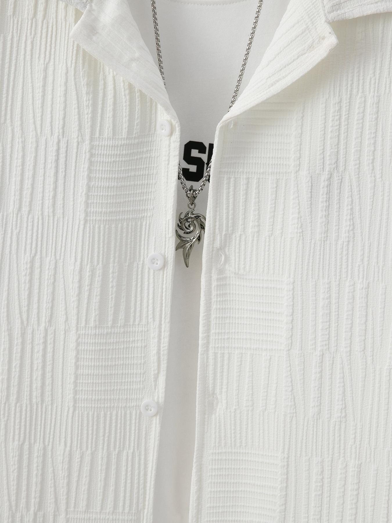 Das zweiteilige Set besteht aus einem kurzärmeligen Hemd und passenden Shorts, die mit ihrem minimalistischen Design und der feinen Webstruktur für einen dezenten Luxus sorgen.