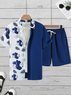 Stil: Herren Sommer Freizeit-Set (Kurzarmhemd + Shorts)