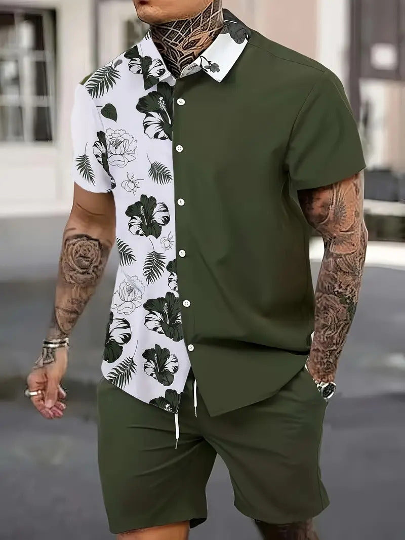 Das Hanetes Select Herren Tropical Contrast Set bringt frischen Urlaubsflair in deinen Alltag. Mit seinem halbbedruckten Design aus floralen Elementen und cleanem Uni-Stoff verbindet es Tropenästhetik mit moderner Streetwear-Eleganz – ein Look, der Stil und Selbstbewusstsein ausstrahlt.