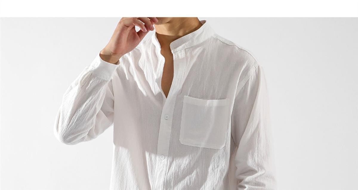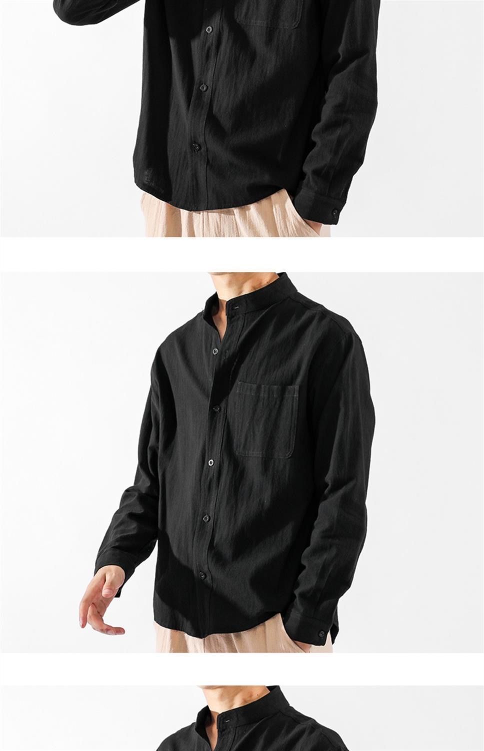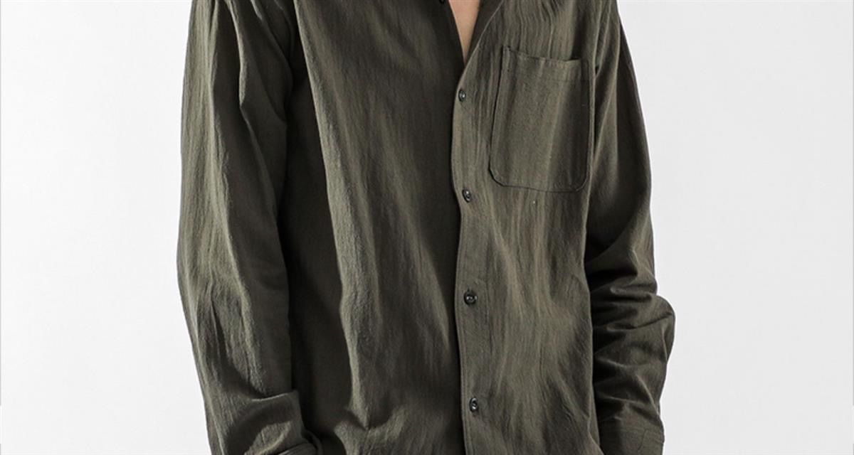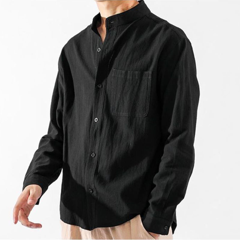 Der klassische Stehkragen im chinesischen Stil verleiht dem Hemd seinen charakteristischen, kultivierten Look, während die lockere Passform Bewegungsfreiheit und Komfort bietet.