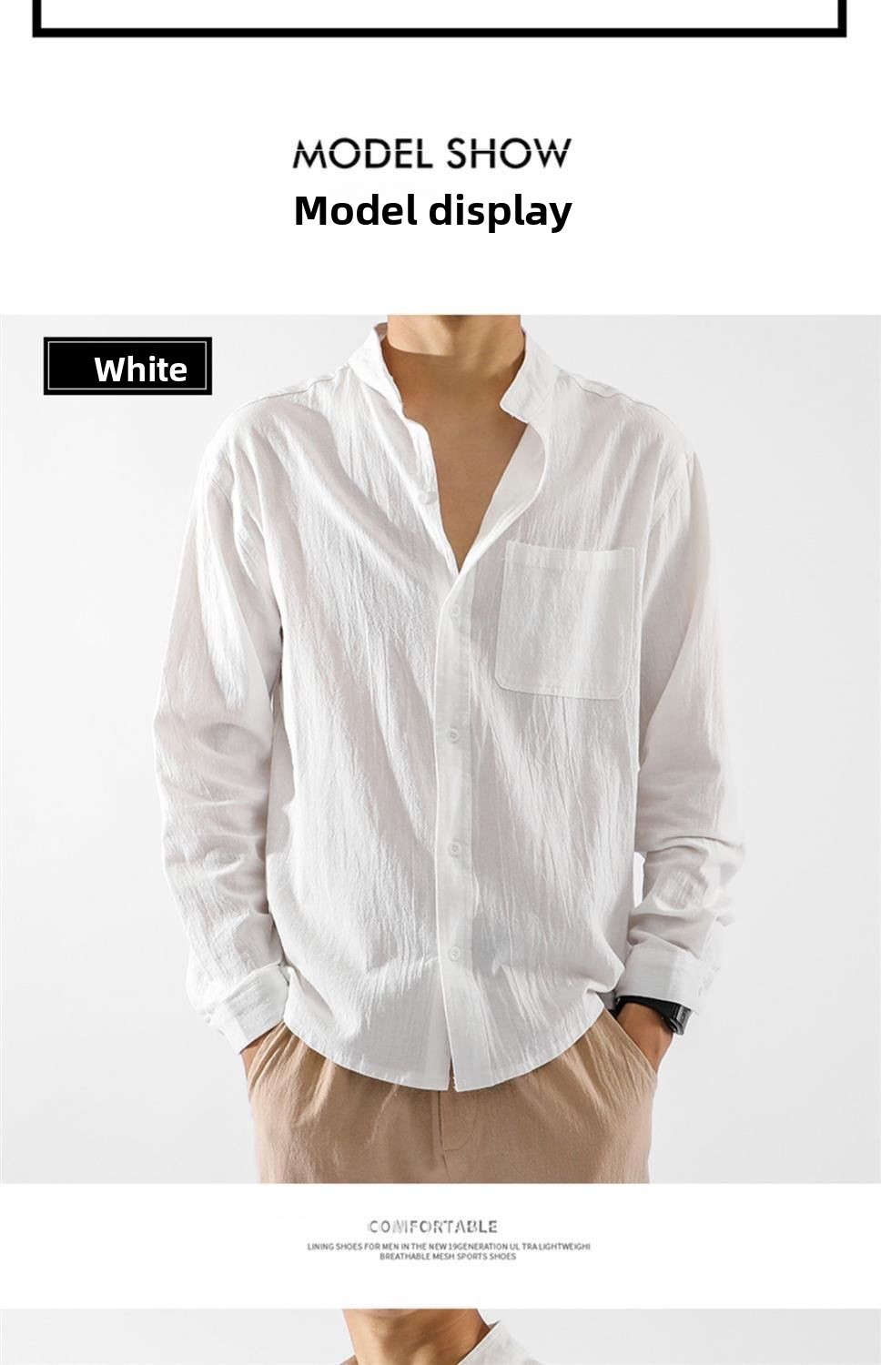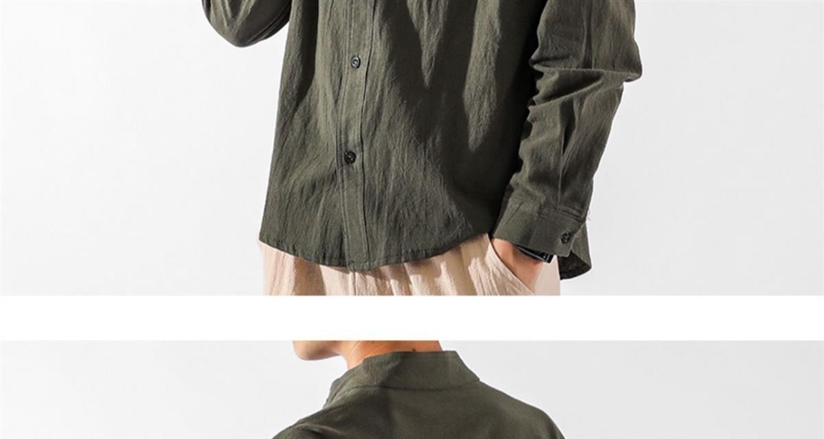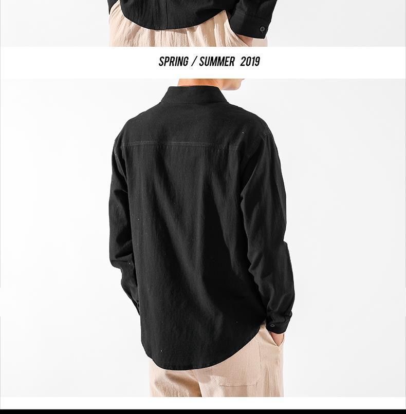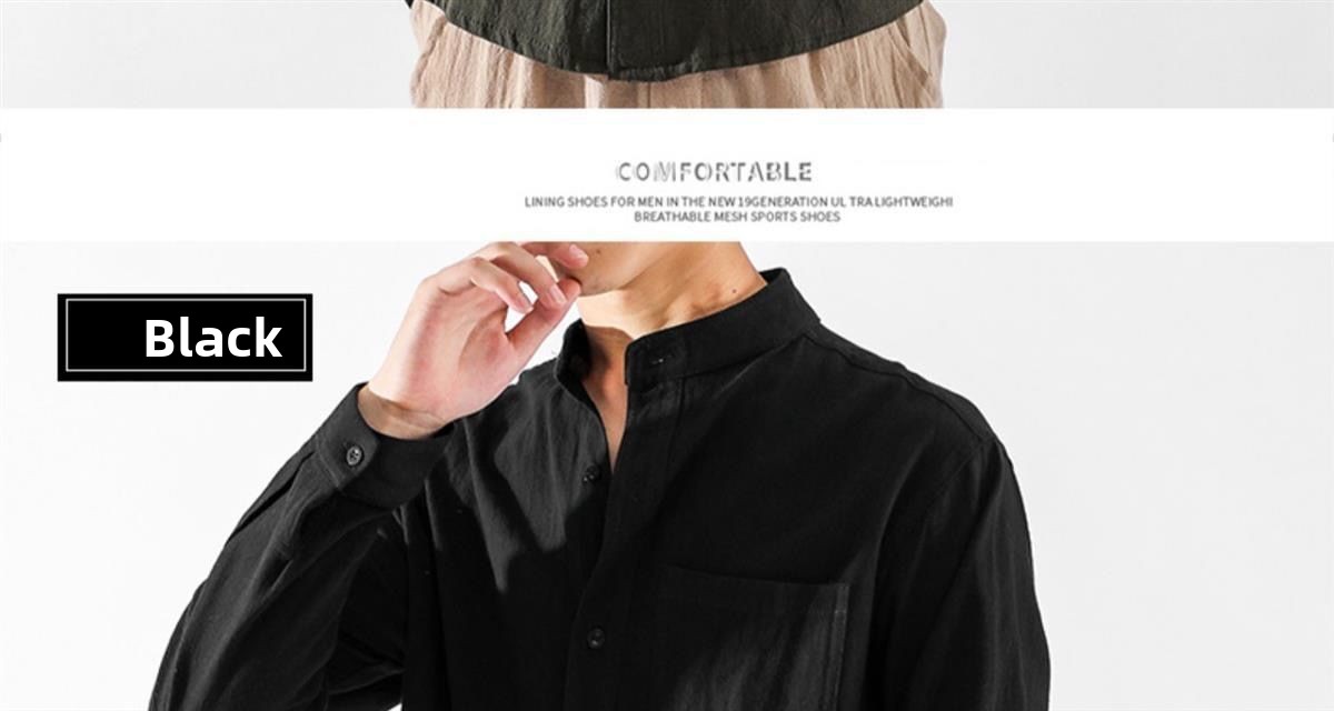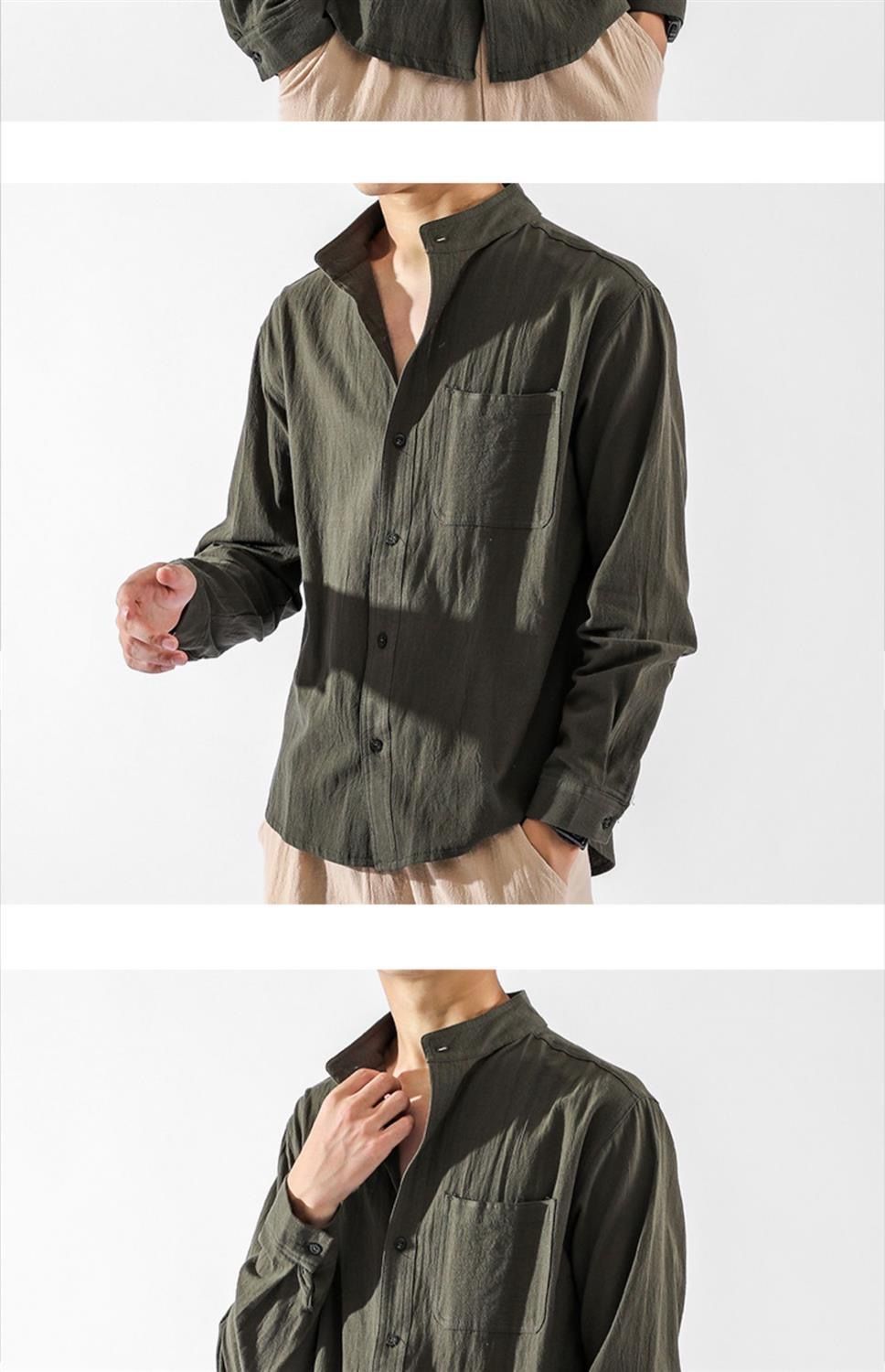 Der klassische Stehkragen im chinesischen Stil verleiht dem Hemd seinen charakteristischen, kultivierten Look, während die lockere Passform Bewegungsfreiheit und Komfort bietet.