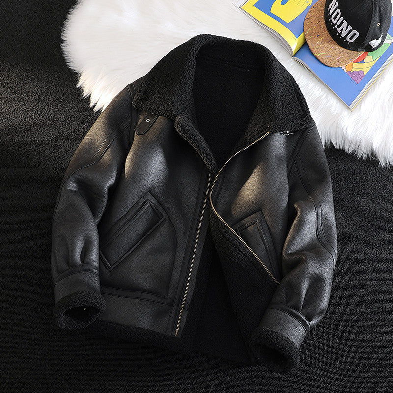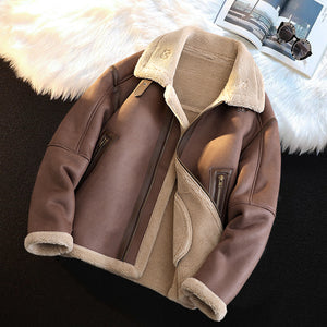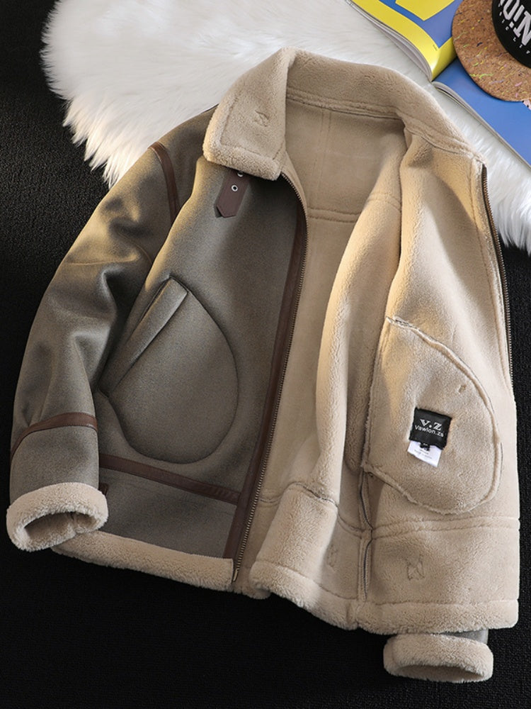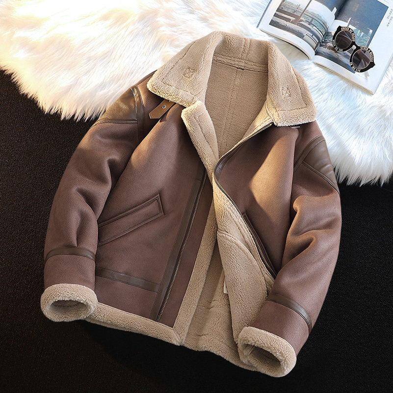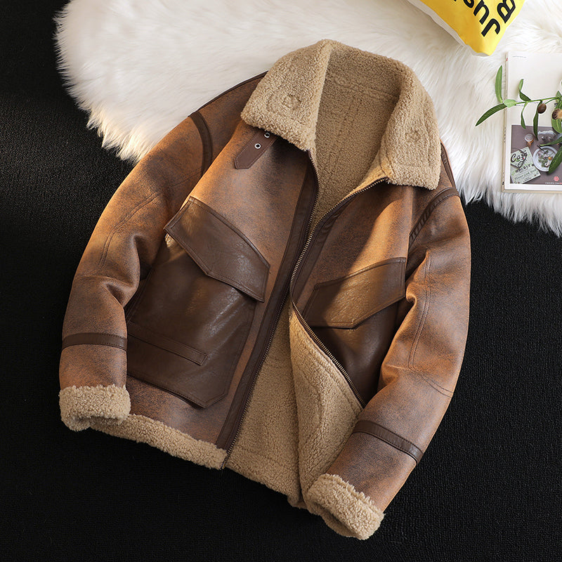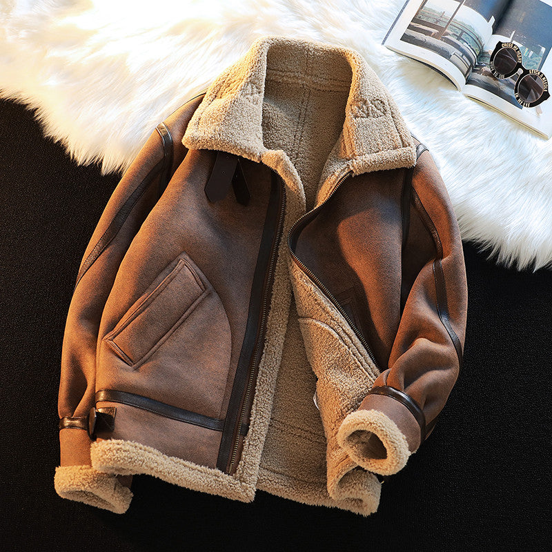 Herren Wildlederjacke mit Lammwollfutter – Luxus, Wärme & Stil im Retro-Design