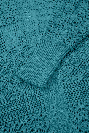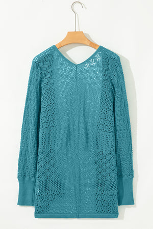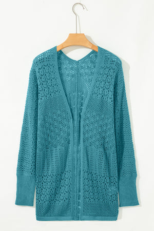Jet Stream Mix Pattern Hollow Knit Open Front Cardigan