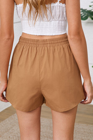 Khaki Embroidered Tassel Tie Elastic Waist Shorts