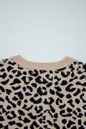 Khaki Leopard Drop Shoulder Knitted Cardigan