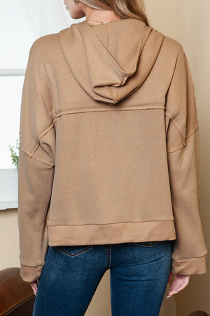 Khaki Solid Color Casual Button Seam Trim Hoodie