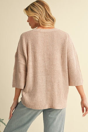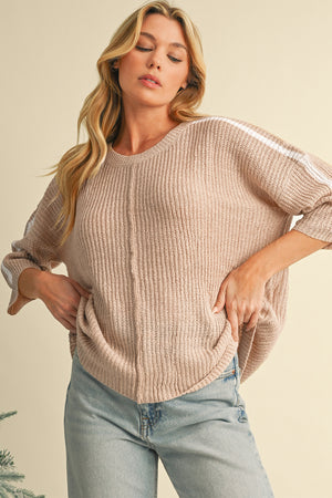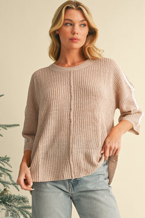 Light French Beige Contrast 3/4 Sleeve Crew Neck Sweater