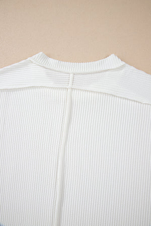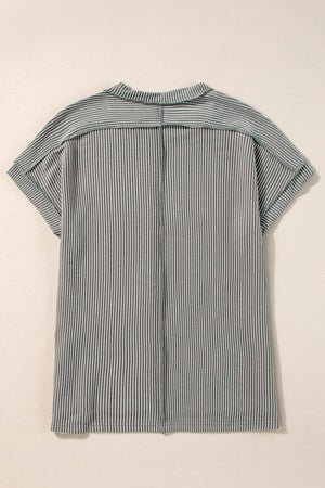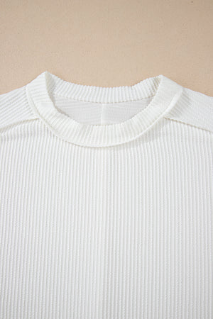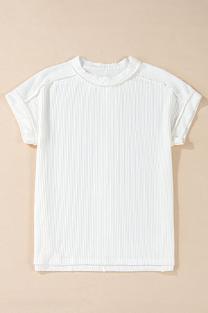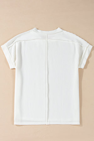 Medium Grey Crinkle Rib Knit Exposed Seam Round Neck T-shirt