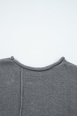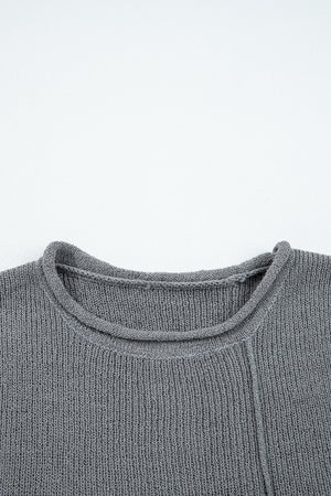 Medium Grey Raw Edge Uneven Hem Patchwork Drop Shoulder Sweater