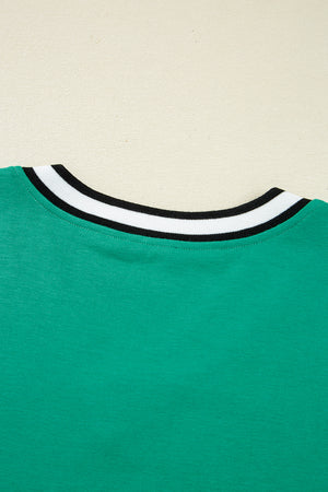 Mint Green Preppy Contrast Striped V Neck Long Sleeve T-shirt Dress