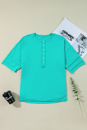 Mint Green Solid Color Half Sleeve Henley Top