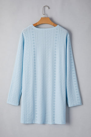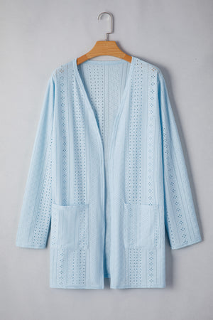 Mist Blue Solid Color Pocket Long Sleeve Cardigan