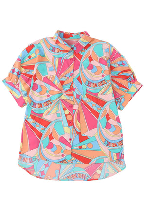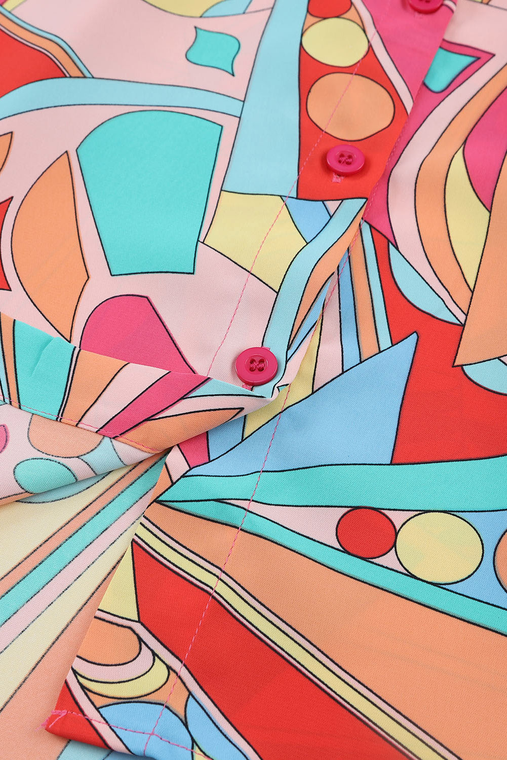 Multicolor Abstract Print Half Batwing Sleeve Loose Blouse