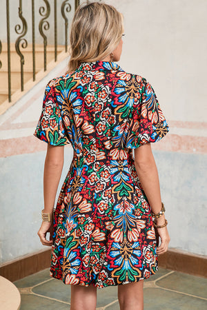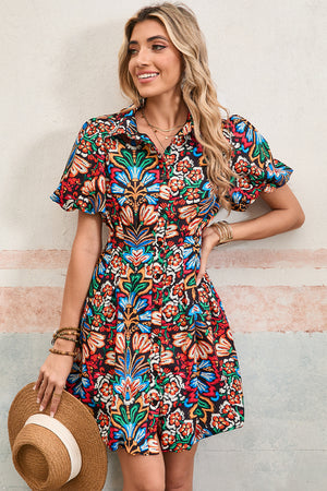 Multicolour Bohemian Floral Bubble Sleeve Dress
