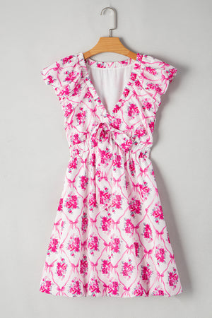 Multicolour Boho Bow Floral Print Knot V Neck Mini Dress