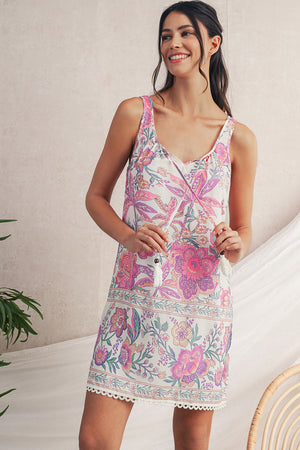 Ein Kleid, das pure Lebensfreude ausstrahlt – das Multicolour Boho Floral Tassel Tie Mini Dress kombiniert bunte Boho-Elemente, zarte Blumenmuster und verspielte Details zu einem Look voller Ausdruck und Stil.