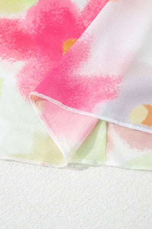 Multicolour Floral Lettuce Trim Cropped Mesh Top