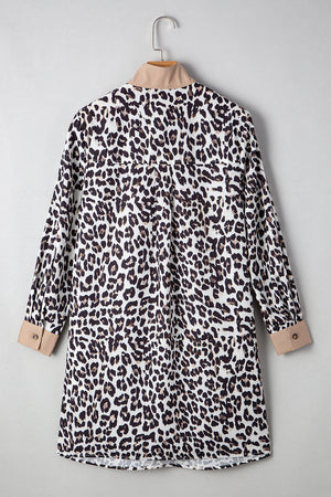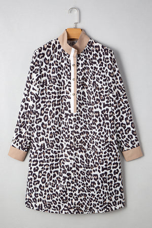 Multicolour Leopard Print Patchwork Collar Flowy Mini Dress
