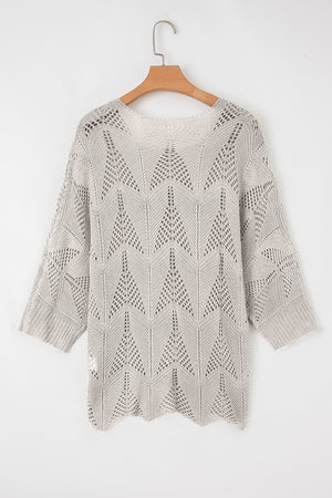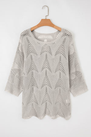 Navy Blue Hollow Out Knit 3/4 Sleeve Loose Sweater