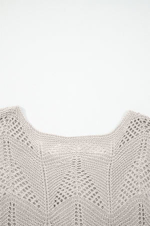 Der Navy Blue Hollow Out Knit 3/4 Sleeve Loose Sweater bringt lässige Eleganz und Komfort in deine Garderobe. Ein Muss für Frauen, die auf modische Vielseitigkeit und lässigen Chic setzen.