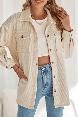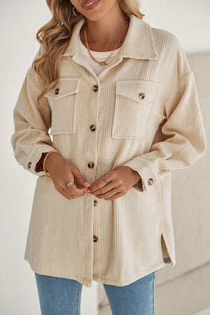 Oatmeal Corduroy Flap Pocket Button Up Shacket