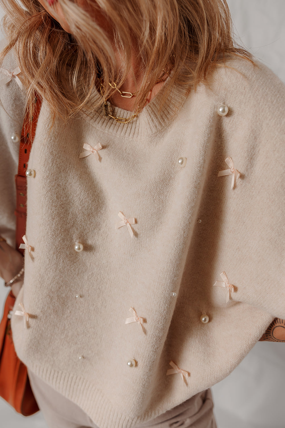 Design: Feinstrick mit Perlen- & Schleifendetails