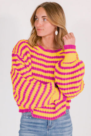 Orange Striped Bubble Sleeve Loose Sweater