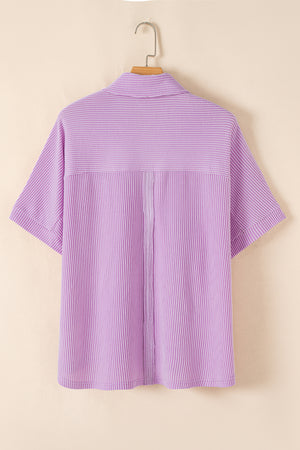 Orchid Bouquet Corded Flap Pocket Collared Buttoned Blouse