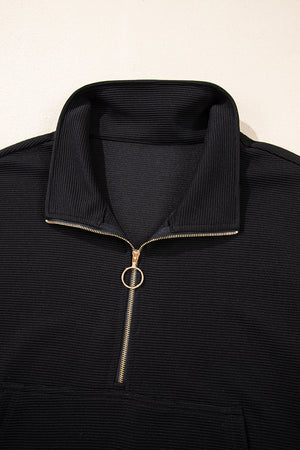 Oberteil: Half-Zip Pullover mit Kängurutasche & Seitenschlitzen