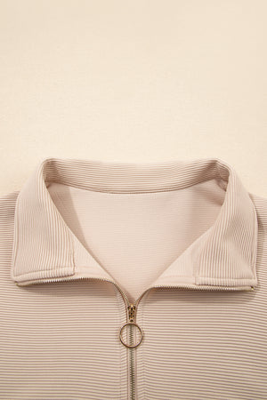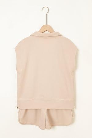 Parchment Half Zip Kangaroo Pocket Top Drawstring Shorts Set