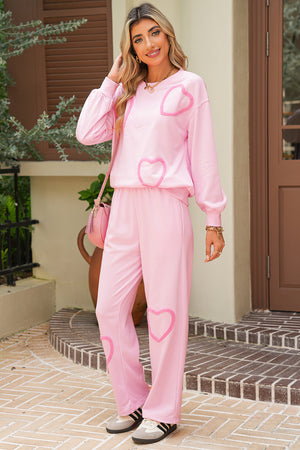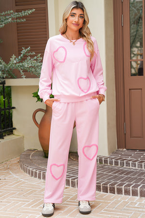 Phalaenopsis Chenille Heart Pattern Casual Pants Set