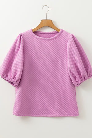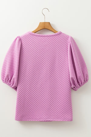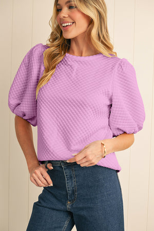 Phalaenopsis Solid Textured O Neck Puff Sleeve Blouse