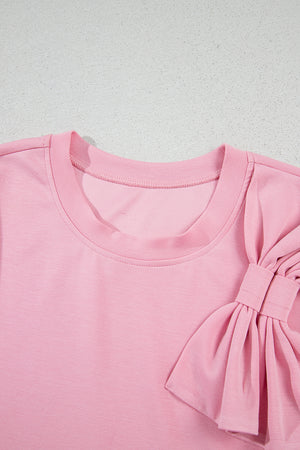 Pink Bow Applique Solid Color Sweet T-shirt