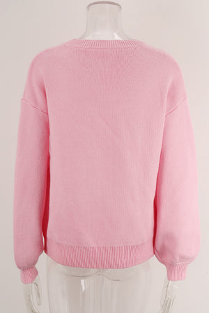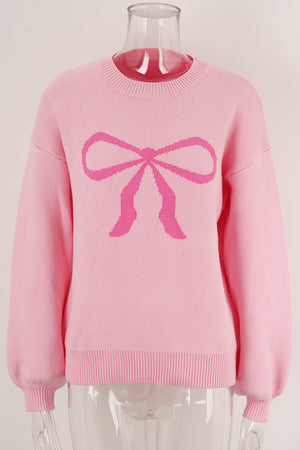 Der klassische Rundhalsausschnitt sorgt für einen zeitlosen Look, während die dezenten Schleifendetails dem Pullover eine zarte, verspielte Note verleihen.