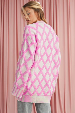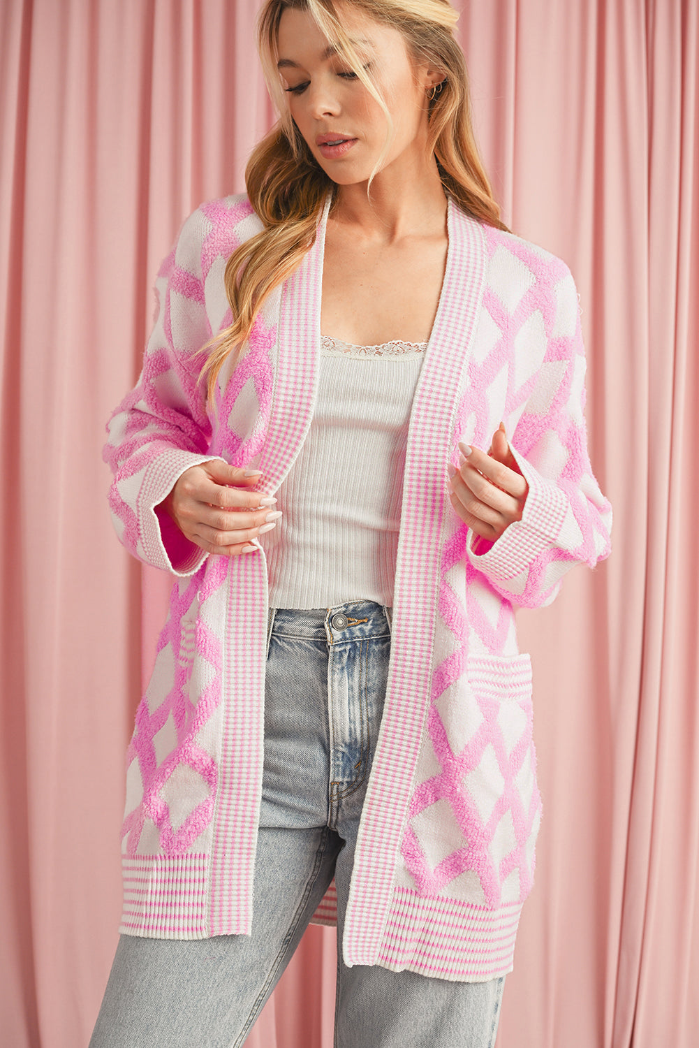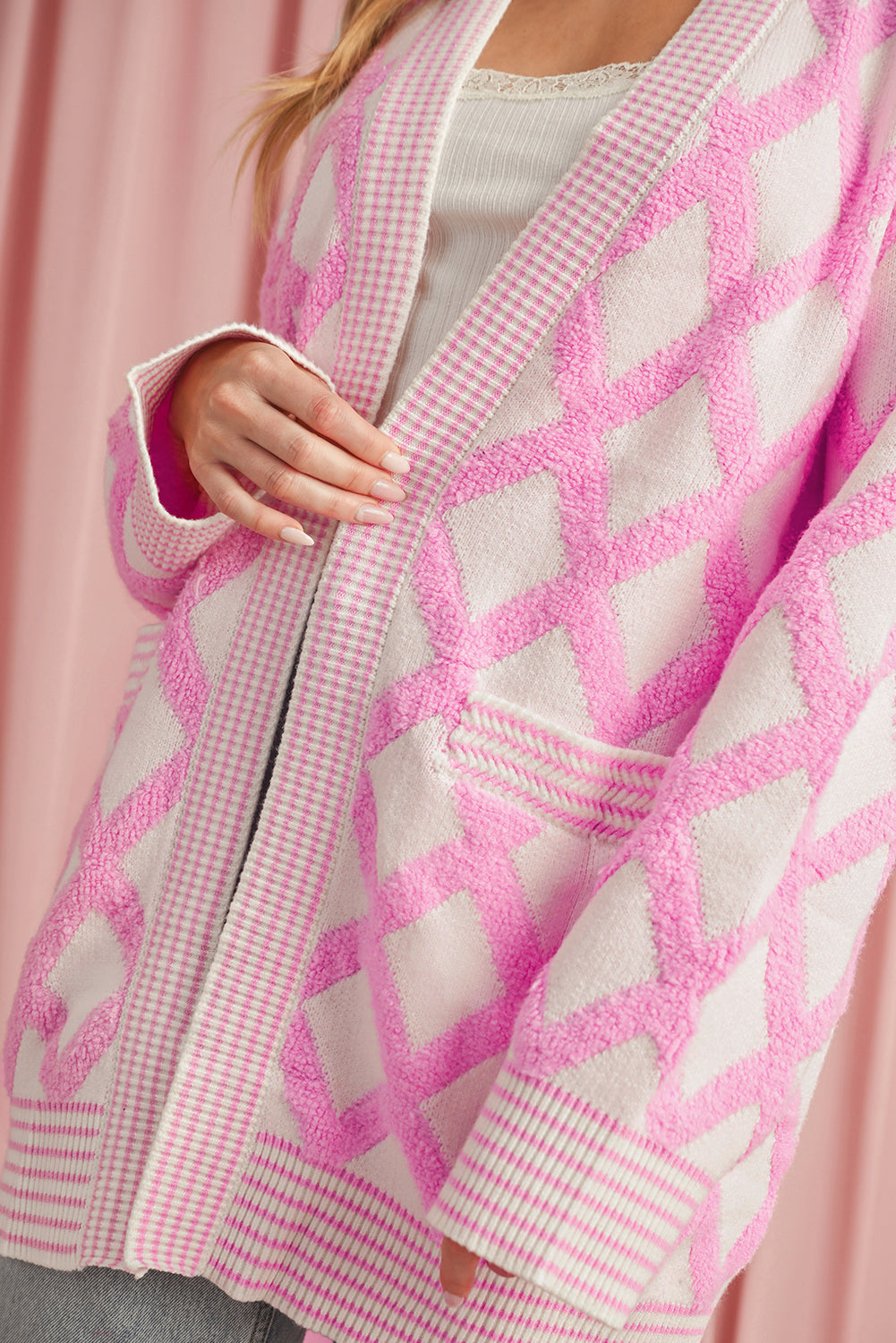 Verspielt, feminin & modern – der Hanetes Select Damen Pink Checkered Cardigan mit offenen Taschen