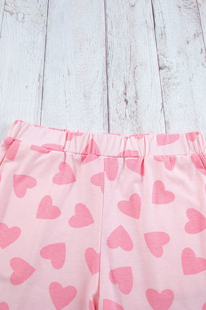 Pink Heart Print Long Sleeve Top and Shorts Loungewear Set
