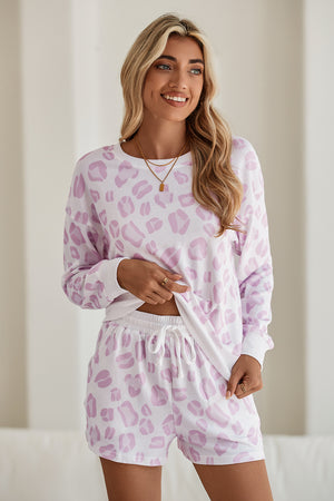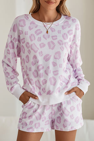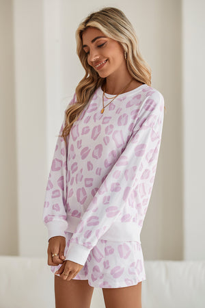 Pink Leopard Print Pullover and Shorts Pajama Set