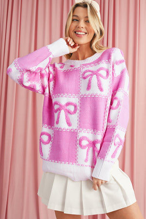 Pink Sweet Bow Two Tone Checkered Sweater