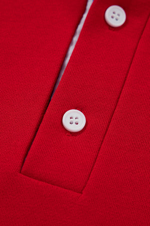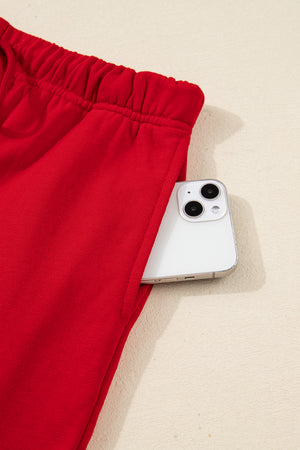 Racing Red Striped Collar Knot Sleeve Sweatshirt and Shorts Set
