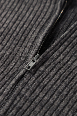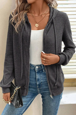 Red Dahlia Ribbed Zip Front Drawstring Hoodie