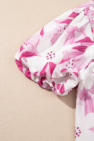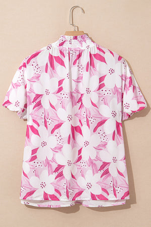 Rose Floral Frilled Collar Short Sleeve Blouse