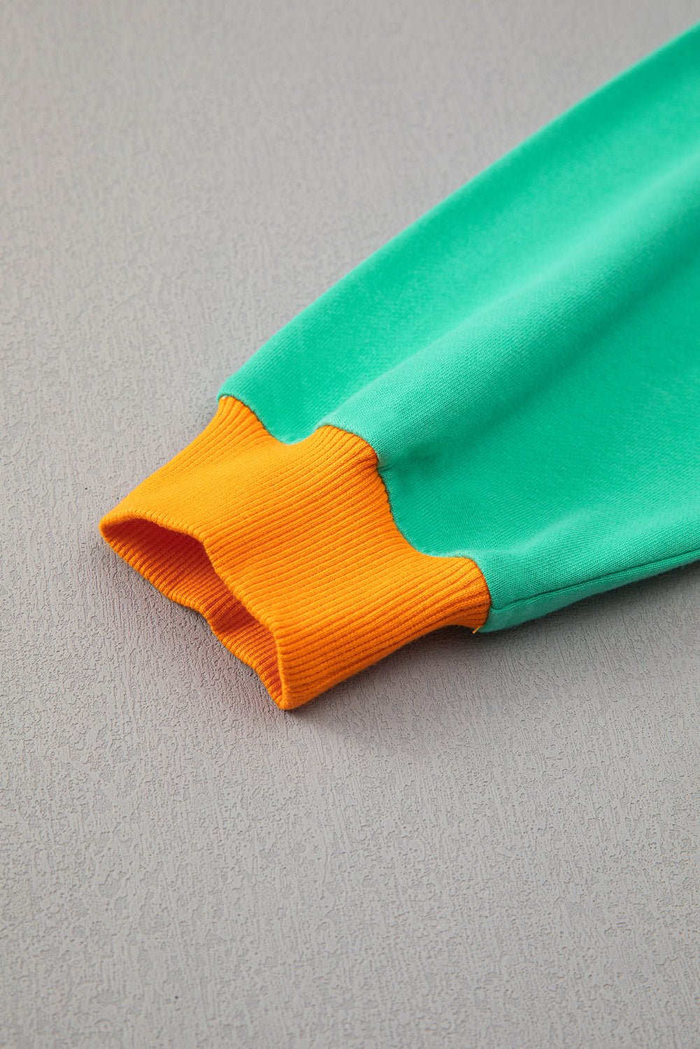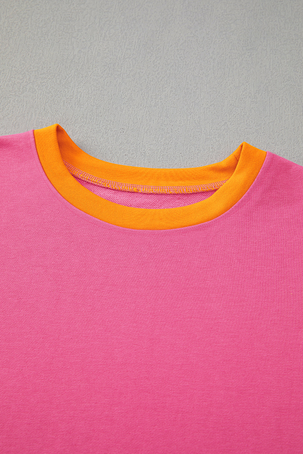 Rose Red Colorblock Patchwork Long Sleeve Top and Pants Set